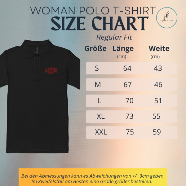 Dieses Poloshirt vereint zeitlose Eleganz mit tiefer Bedeutung. Aus strapazierfähigem und dennoch angenehm weichem Piqué-Stoff gefertigt, sorgt es für ein komfortables Tragegefühl – ob beim Gottesdienst, im Alltag oder bei besonderen Anlässen. Die klassische Pololeiste mit Knöpfen sowie der taillierte Schnitt betonen dezent die feminine Silhouette, während die dichte Piqué-Webung für ein gepflegtes Erscheinungsbild sorgt.
