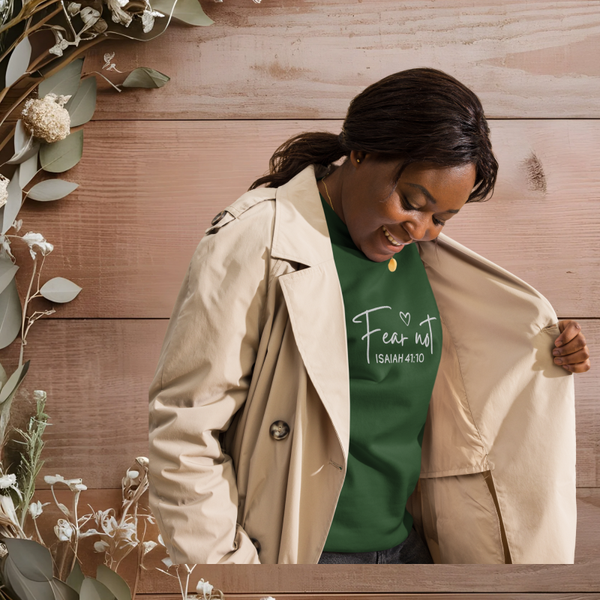 Welch wunderbare Gewissheit für uns. Fürchte dich nicht wird in der Bibel 365 Mal erwähnt, einmal für jeden Tag, und nun hat es einer dieser Verse auf einen unserer neuen Pullover geschafft und kann als visuelle Erinnerung in unserem Alltag dienen.