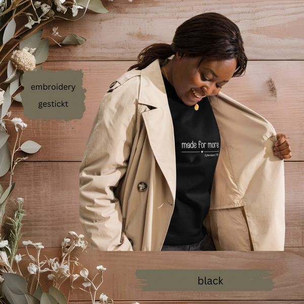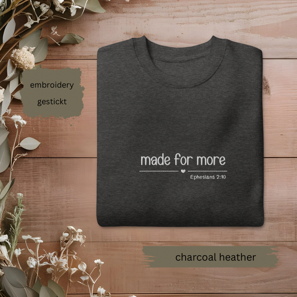 Dieser Pullover ist die perfekte Ergänzung zum „created with purpose“ T-Shirt, denn er zeigt nicht nur, dass wir ein Ziel im Leben haben, sondern bezeugt auch öffentlich, dass wir von Jesus Christus geschaffen und vorherbestimmt sind, für IHN zu leben und ein lebendiges Zeugnis von ihm zu sein.